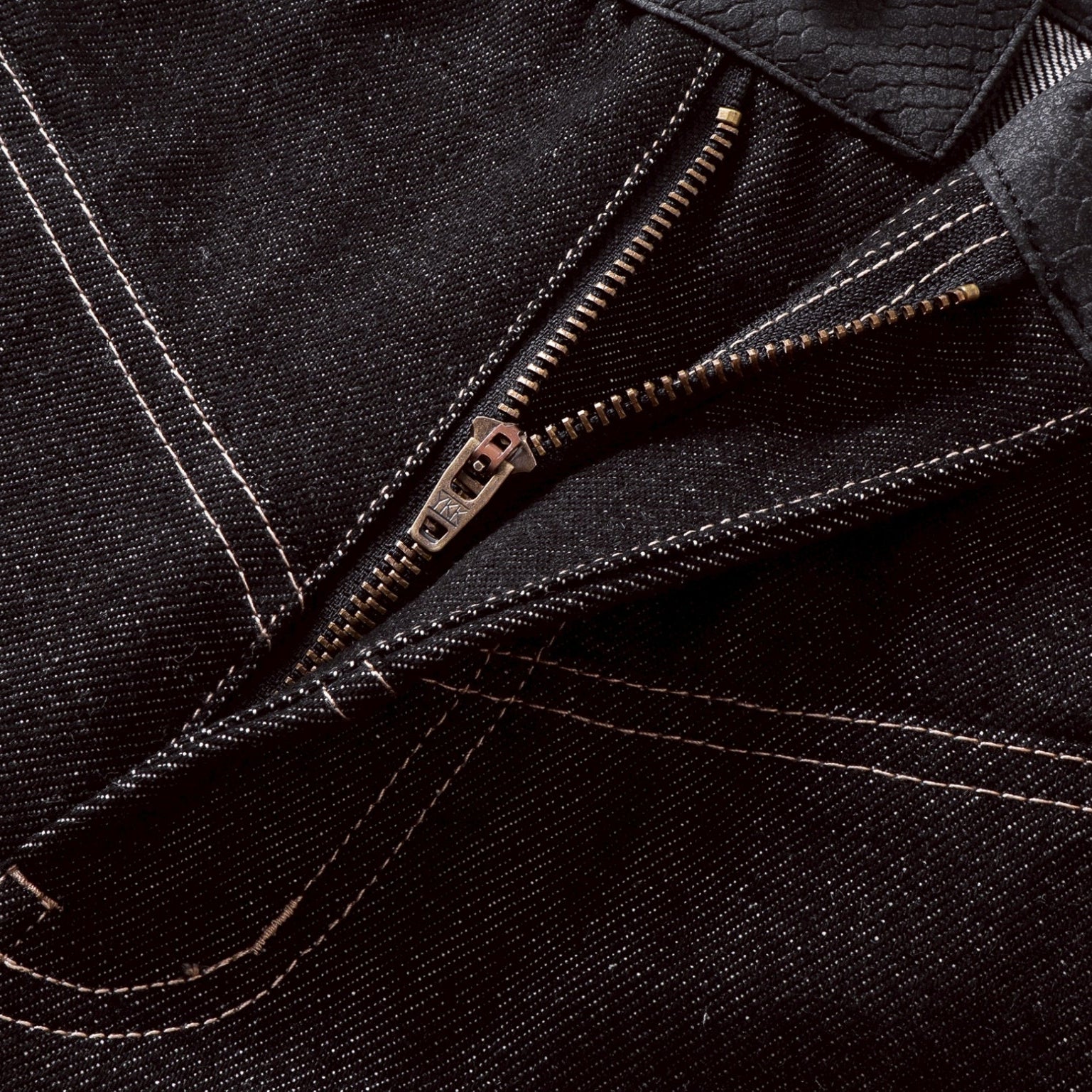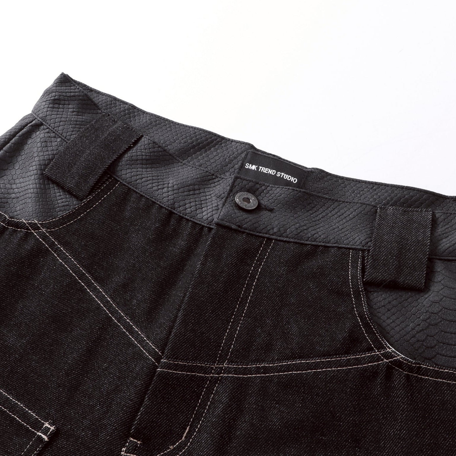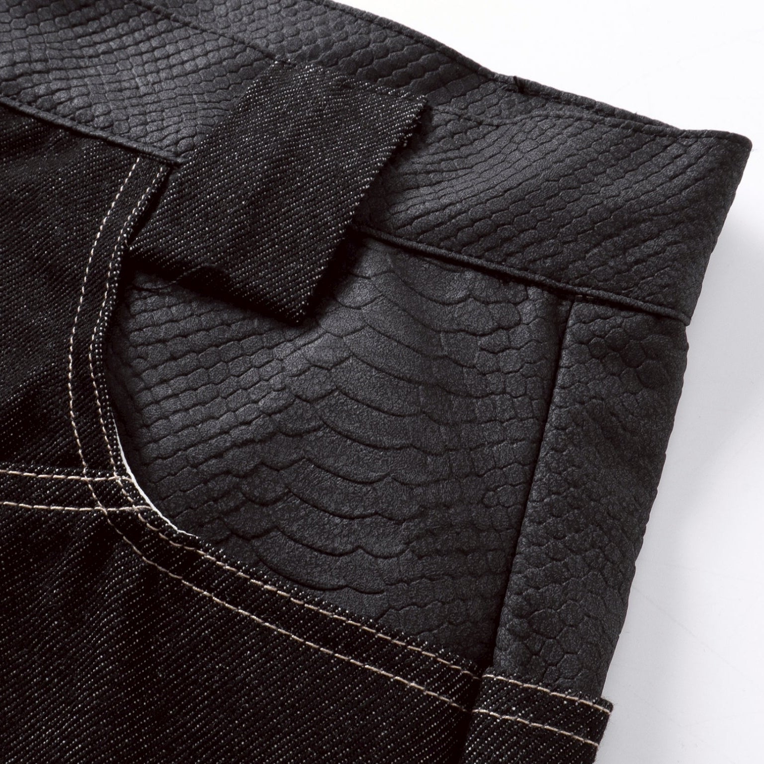 【4/1 發售】菱格紋皮質 刺繡火焰圖騰 彎刀丹寧褲